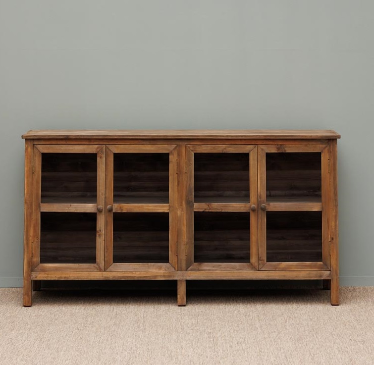 Un buffet 4 portes asymétriques à l’effet rustique.