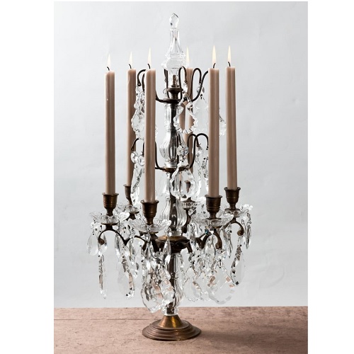 Cette girandole est l’une de nos pièces maitresses. D’inspiration Louis XV, ces six branches sont composés de bronze et de pampilles en verre ciselé.