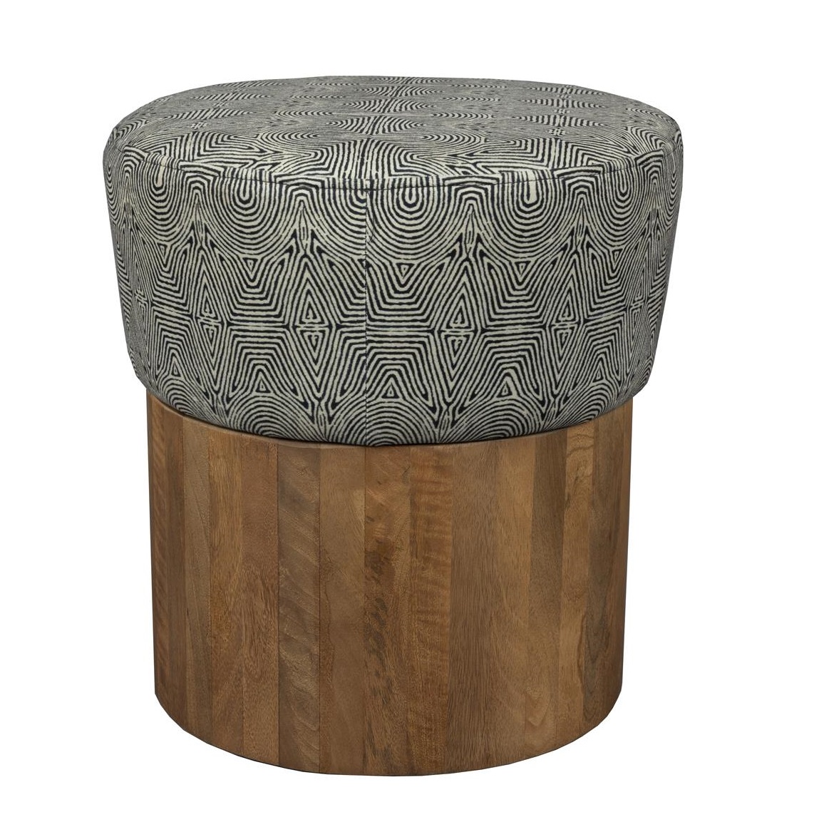 Ce Pouf est une pièce réalisée à la main selon un savoir faire artisanal. Il possède une assise en textile, particulièrement douce au toucher, inspirée des motifs graphiques des années 70. Son ravissant piètement est en bois manguier