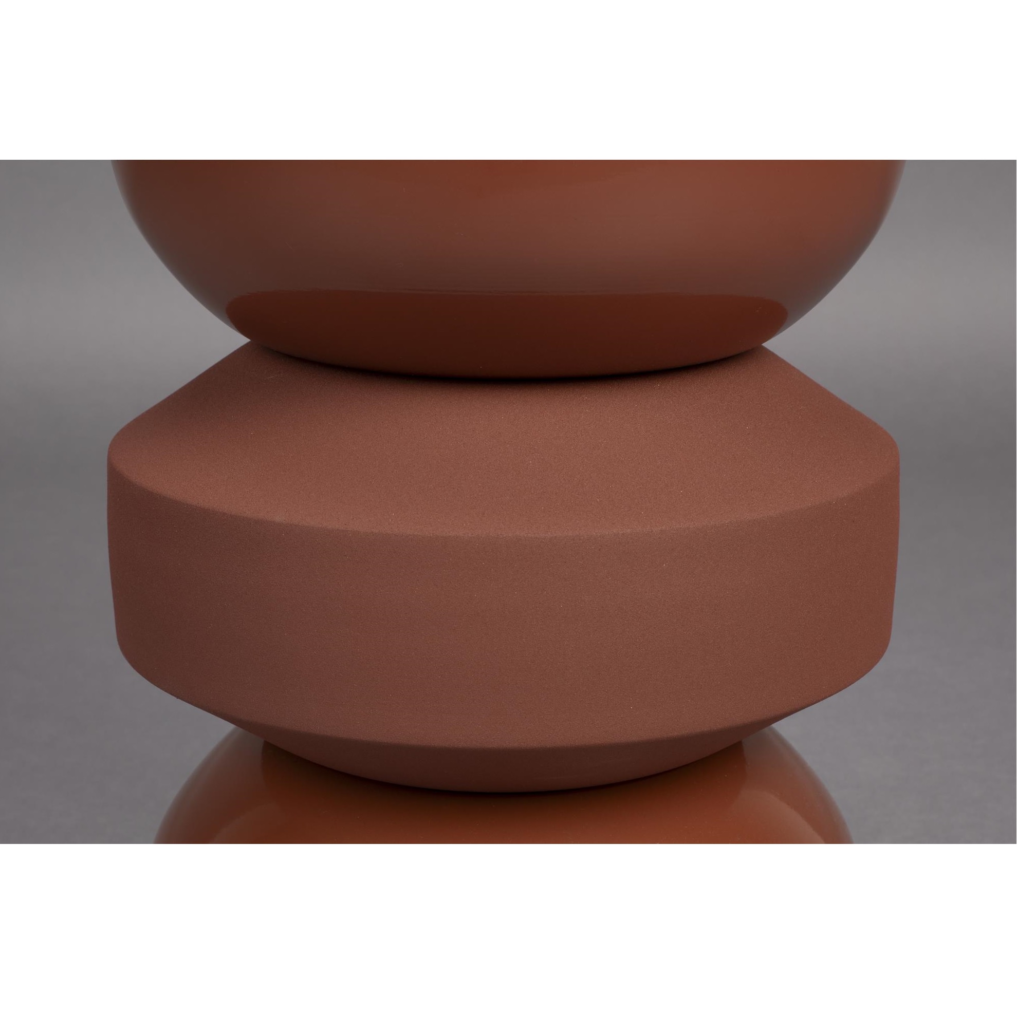 D’inspiration année 70, ce tabouret ou cette table d’appoint, joue sur les finitions entre le mat et le brillant.